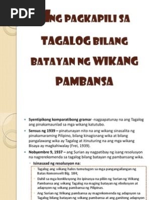 Ang Pagkapili Sa Tagalog Bilang Batayan Ng Wikang Pdf