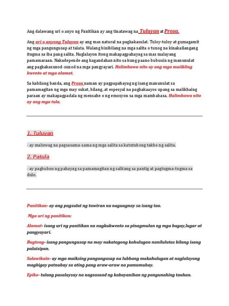 Ang Dalawang Uri O Anyo Ng Panitikan Ay Pdf