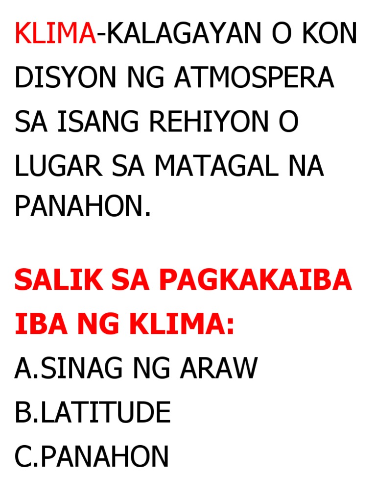 Ikatlong Intermedyang Panahon Ang Ika-21 Dinastiya na tinawag din bilang Tanites ay pinasimulan ni Smendes 1070-1044 BCE ng Lower Egypt. Ang klima ay tumutukoy sa kalagayan ng atmospera sa isang partikular na lugar sa loob ng mahabang panahon at sa kasalukuyang panahonAng klima ay ang pangkaraniwan at pangmatagalang kalagayan at katangian ng panahon weather sa isang takdang lugar o rehiyon. Hilagang bahagi ng Central America.