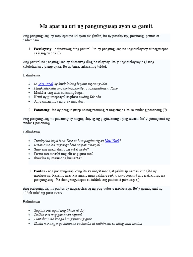 Ma Apat Na Uri Ng Pangungusap Ayon Sa Gamit Pdf