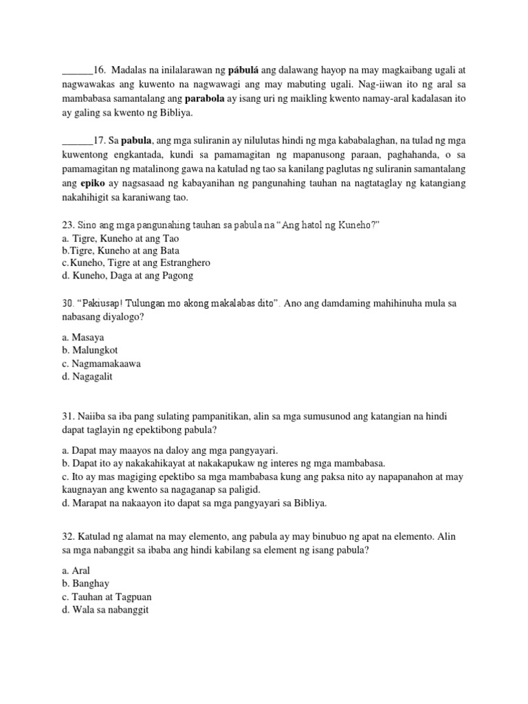 Malambot iyon at nakabaluktot. Kuwento ng Tauhan Ang pokus o tuon ng kuwentong ito ay nasa pangunahing tauhanInilalarawan ang mga pangyayaring pangkaugalian ng mga tauhang nagsisiganap upang mabigyan ng kabuuan ang pag-unawa sa kanila ng isang. Ano ang mga Elemento ng Pabula.